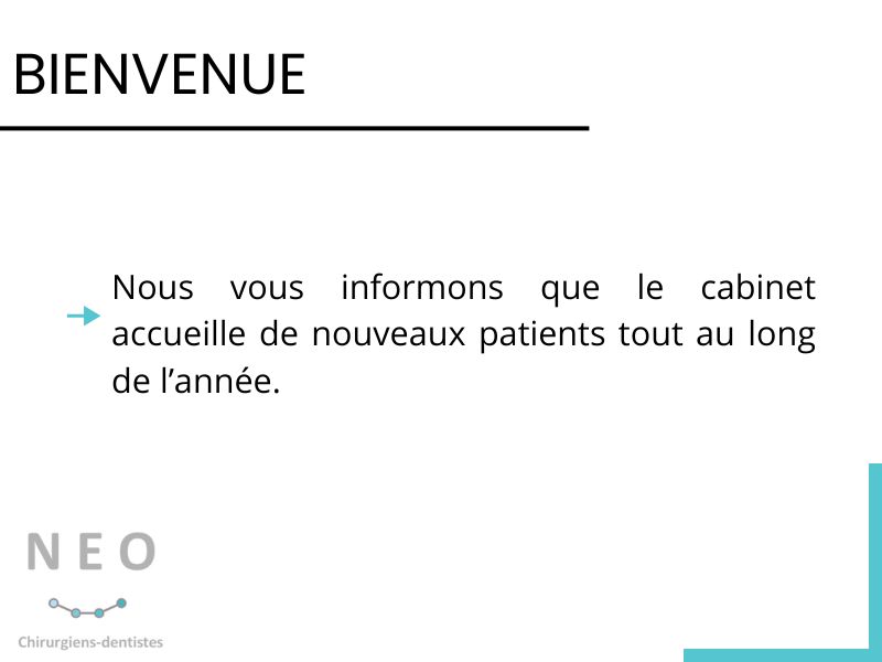 Nous avons le plaisir d’accueillir de nouveaux patients au sein du cabinet.
